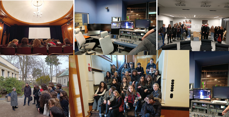 *W czasie wizyty w PWSTFTviT uczniowie Koła teatralnego uczestniczyli również w zajęciach związanych z prezentacją etiud filmowych w historycznej sali kinowej. W ten sposób młodzież poznała metody pracy na wydziale aktorstwa i reżyserii.